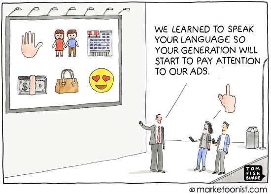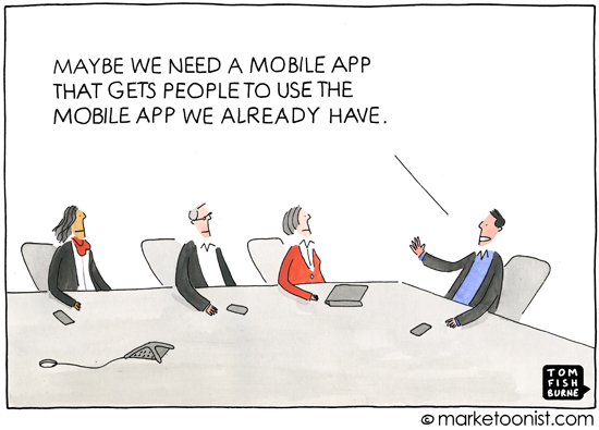 La finesse de l’humour de Tom Finhsburn permet aux dirigeants et cadres de se rendre compte qu’à force d’avoir « le nez dans le guidon » on peut parfois perdre le sens et l’objectif premier de nos actions marketing. A travers ses dessins, il dénonce avec subtilité la vacuité de certaines actions et la ténacité des préjugés dans le secteur du digital.